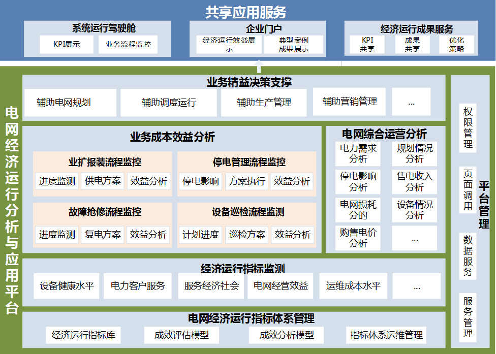µçÍø¾¼ÃÔËÐзÖÎöÓëÀûÓÃÆ½Ì¨ÒÔÓªÅäÐÅÏ¢¼¯³É¡¢ÖÇÄܵ÷¶ÈΪ»ù´¡£¬Í¨¹ý¶ÔÅäÍø¹æ»®¡¢µçÍøÔËÐÓ×¢³ö²ú¼ì½¨¡¢ÓªÏúÖÎÀíµÈÒµÎñÁ÷³Ì¸¨ÖúÓÅ»¯£¬ÔÚÂú×ãÉç»áÔðÈμ°¿¿µÃסÐÔµÄǰÌáÏ£¬ÎªÊµÏÖ¹©µç¾ÖµÄ¾¼ÃÐ§ÒæºÍÉç»áÐ§ÒæµÄ×ÛºÏ×îÓÅ£¬Ìṩ¿ÉÁ¿»¯µÄ¸¨Öú¾ö²ß¼¿Á©£¬ÌáÉýµçÍø¾¼ÃÔËÐÐˮƽ£¬Ö§³ÖÆóÒµµÄ¾«Ò滯ÖÎÀí¡£